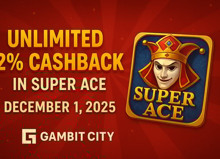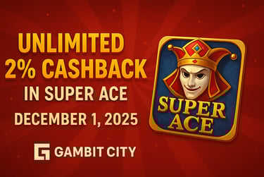 The Unlimited 2% Cashback for Super Ace this December 1, 2025 at GAMBIT CITY is one of the best ways to start the month strong. It’s simple, valuable, and perfectly aligned with what players want—longer sessions, safer gameplay, and guaranteed returns. If Super Ace is part of your rotation, this promo is the perfect opportunity to enjoy it even more.